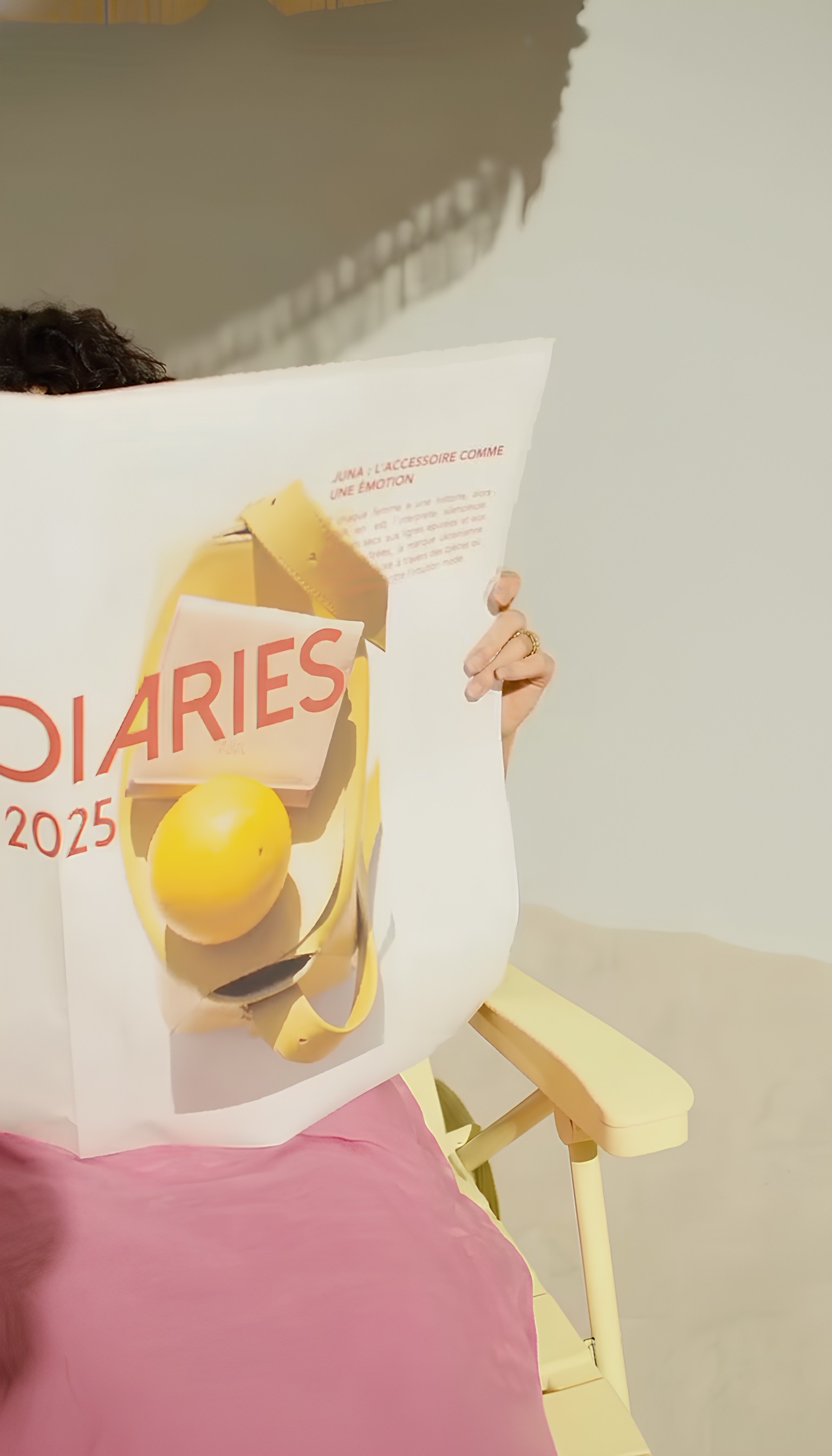 For Juna's new fashion campaign, I designed a prop newspaper that served as a key element of the set for shooting their new bag model. Working with artist Danil Shyriaev, I created several conceptual layout options, taking into account the brand's aesthetics and the photographer's vision. After the client selected two final designs, I adapted the newspaper for printing, ensuring accurate reproduction of textures, typography, and composition for use directly on set.